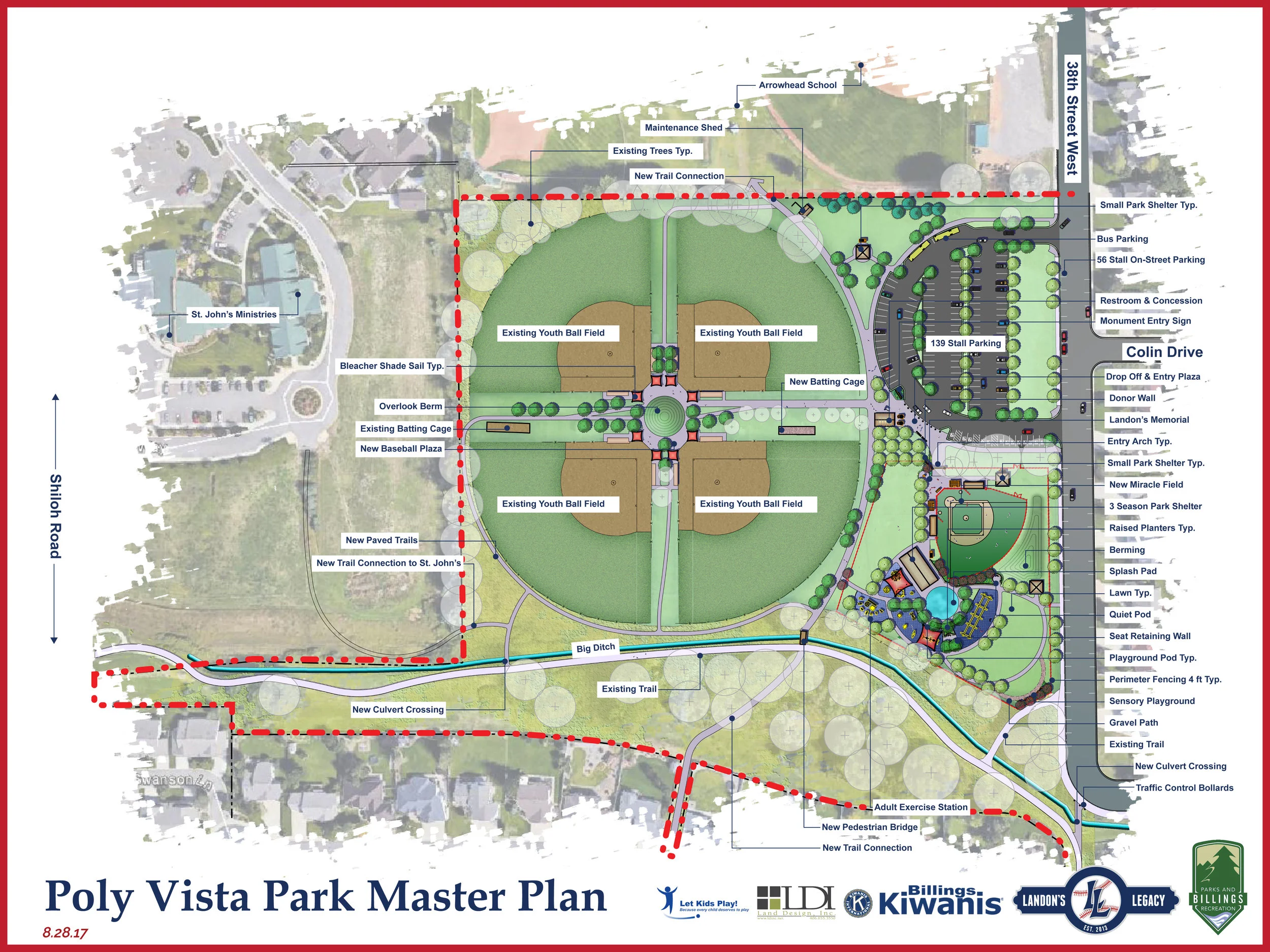 Land Design Inc. in association with Let Kids Play, is honored to be a part of the recently adopted Poly Vista Park Master Plan, which will be the new home to Billings’ first Inclusive Playground and Miracle Field. The park will provide recreational opportunities for the special needs community of Billings, in honor of Landon Smith. Special recognition is due to the Landon’s Legacy Foundation, Billings Kiwanis and Billings Parks and Recreation, for their great vision, dedication and generosity toward our community. THANK YOU to all the families who took the time to contribute to the creation of this Master Plan. Your stories are a continuing source of inspiration for all of us!