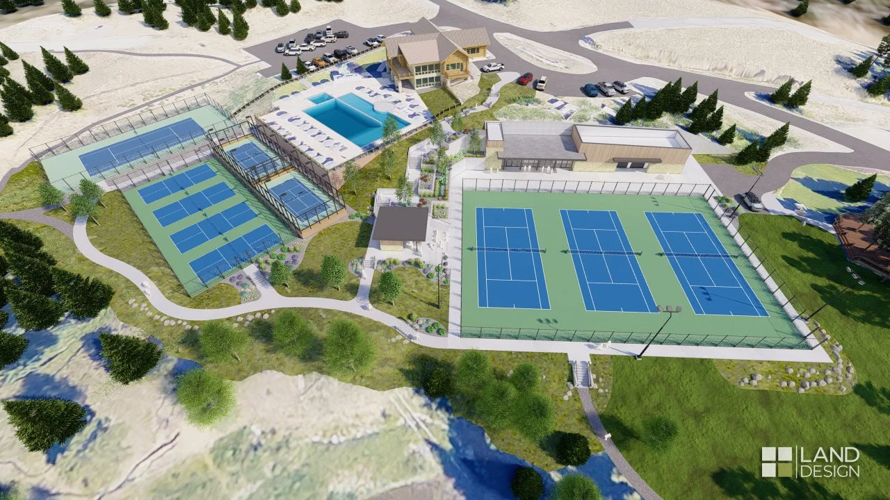 Land Design, Inc. served as lead designer for the Camphouse Ice and Racquet Project at the Yellowstone Club in Big Sky, Montana. Land Design, Inc. facilitated the concept layout alternatives and coordinated the design effort with the broader project team to organize the site around three tennis courts designed to convert to multi-use ice surfaces in winter for hockey, skating, curling, and other seasonal activities. Supporting amenities include a sports complex building, warming hut, spectator areas, improved pedestrian circulation, and the conversion of an existing tennis court into four pickleball courts. Completed in 2025, the project enhances the club’s recreational offerings with an integrated facility designed for year-round member activity.
